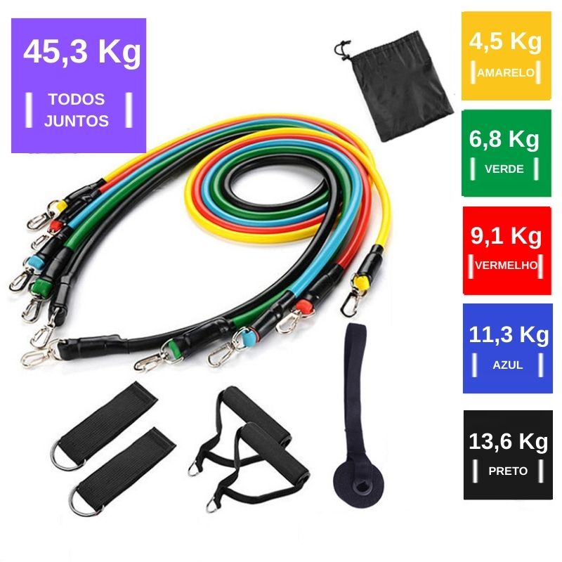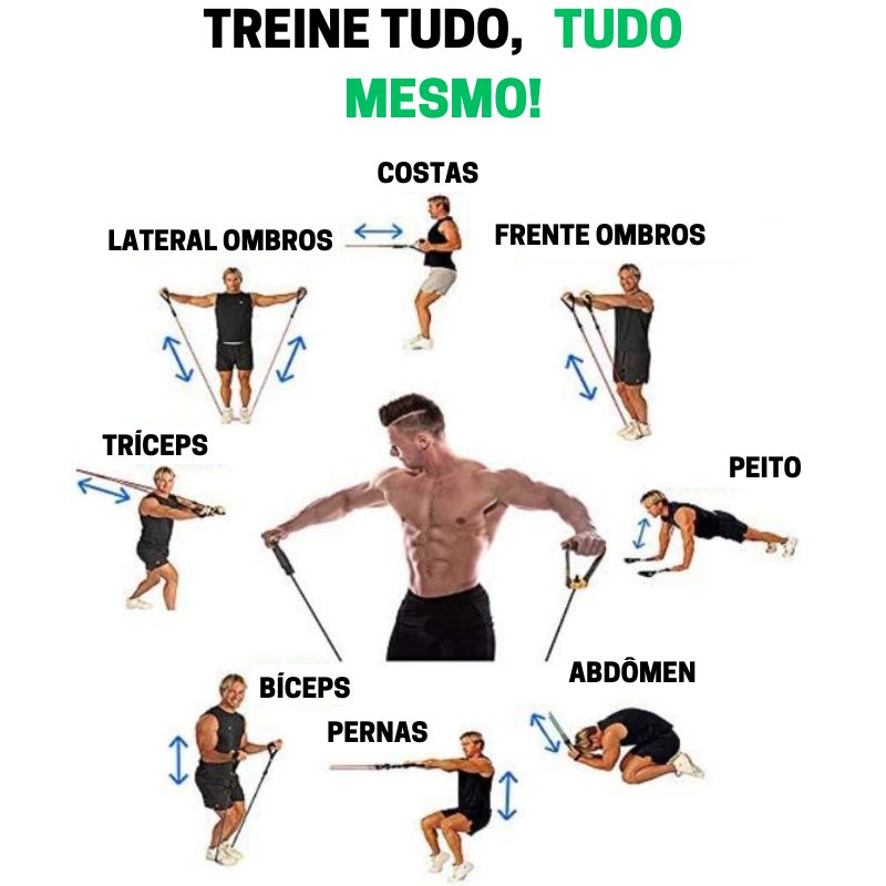 TREINE COM NÍVEIS DE RESISTÊNCIA DIREFERENTES NOS ELÁSTICOS ADAPTE A CARGA PARA CADA GRUPO MUSCULAR